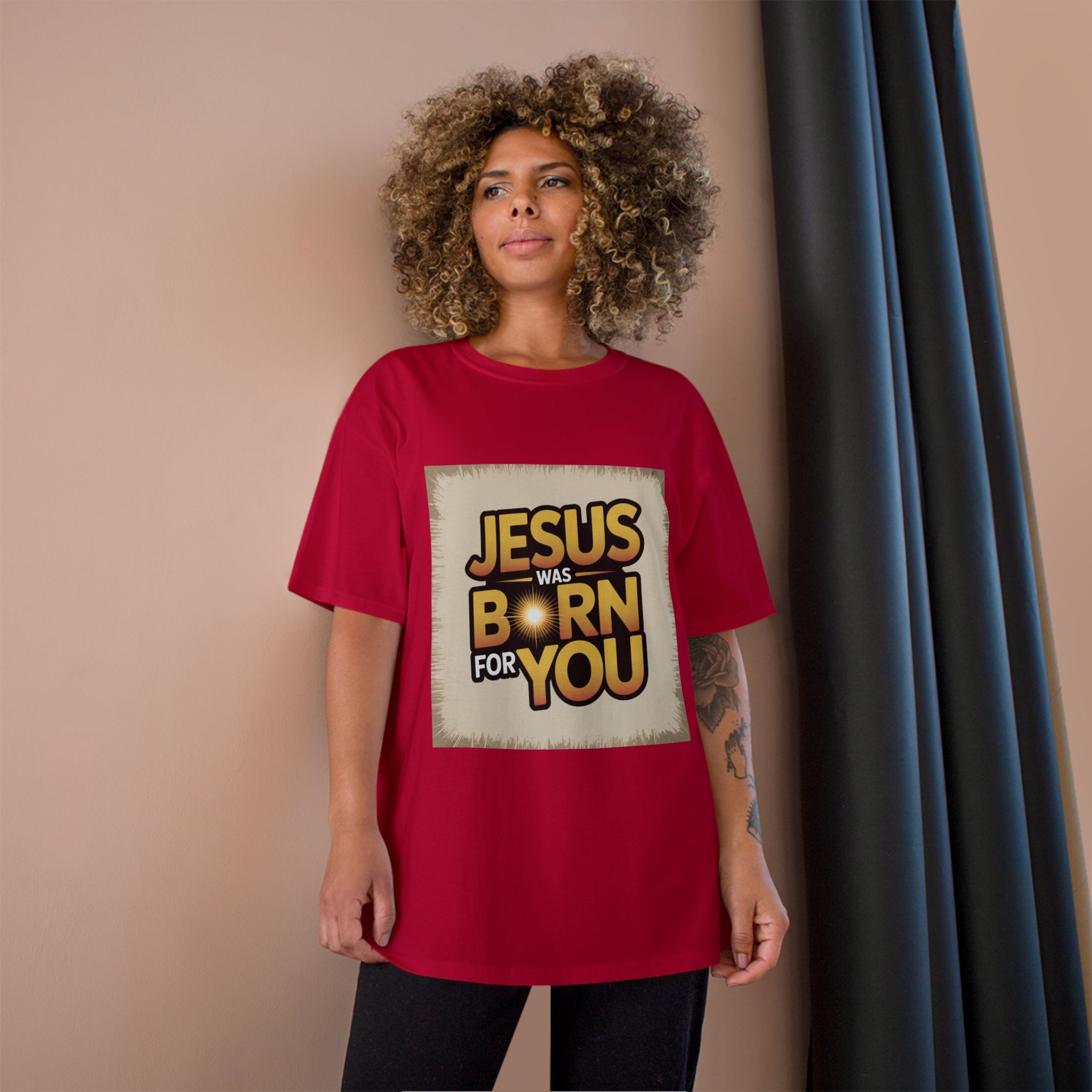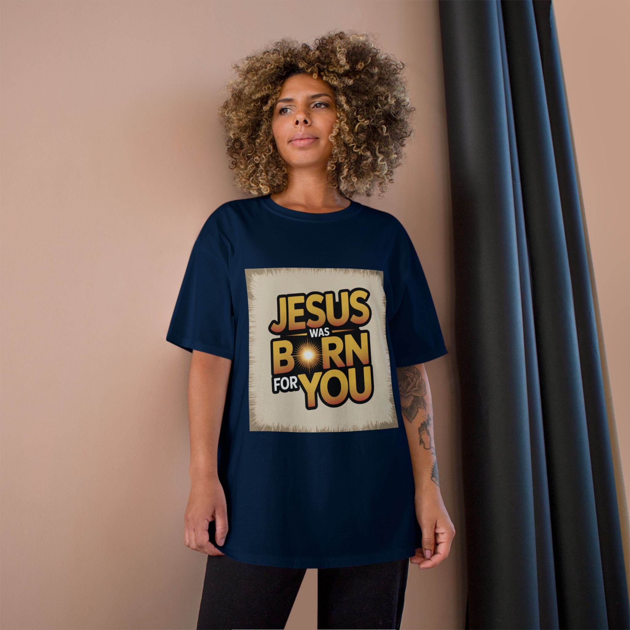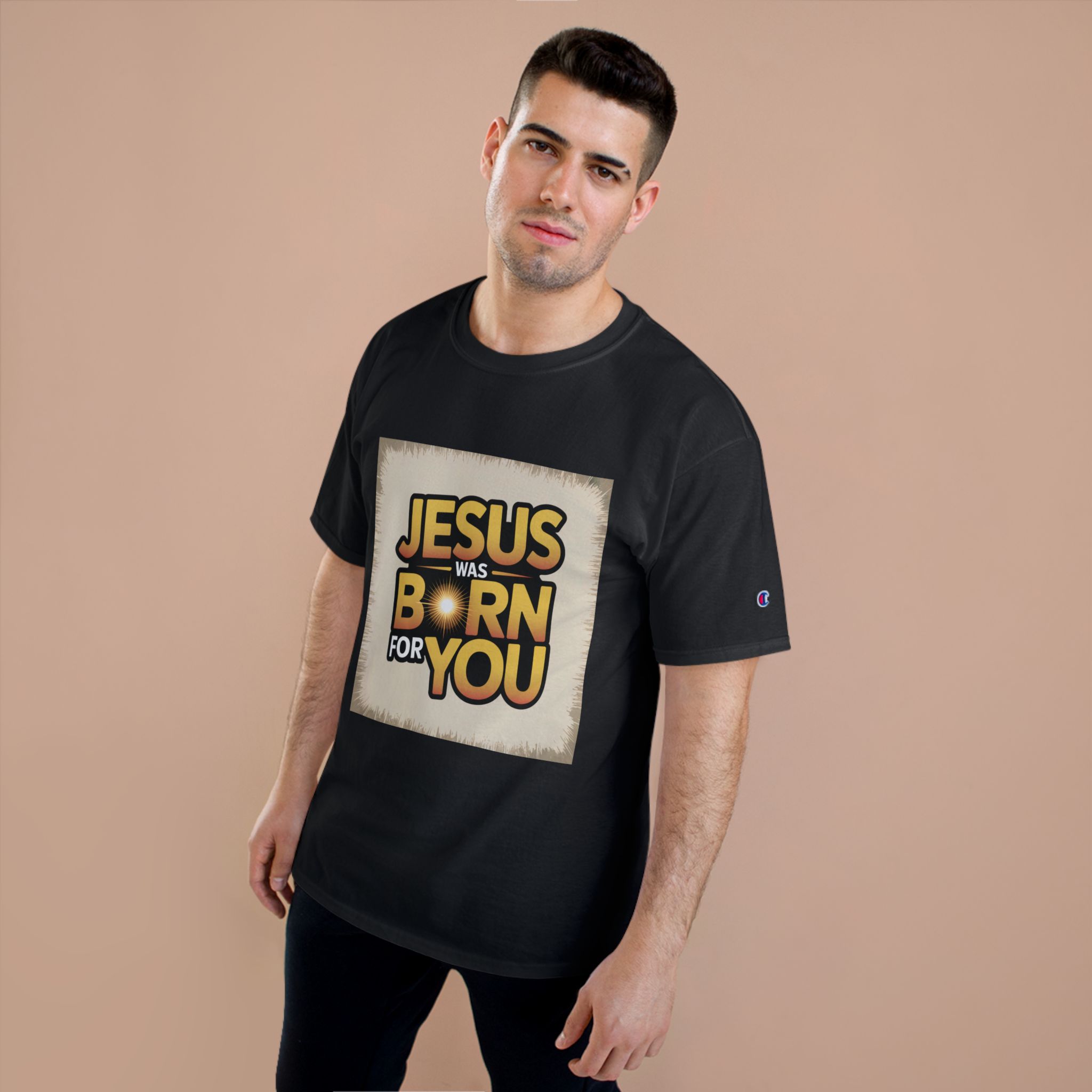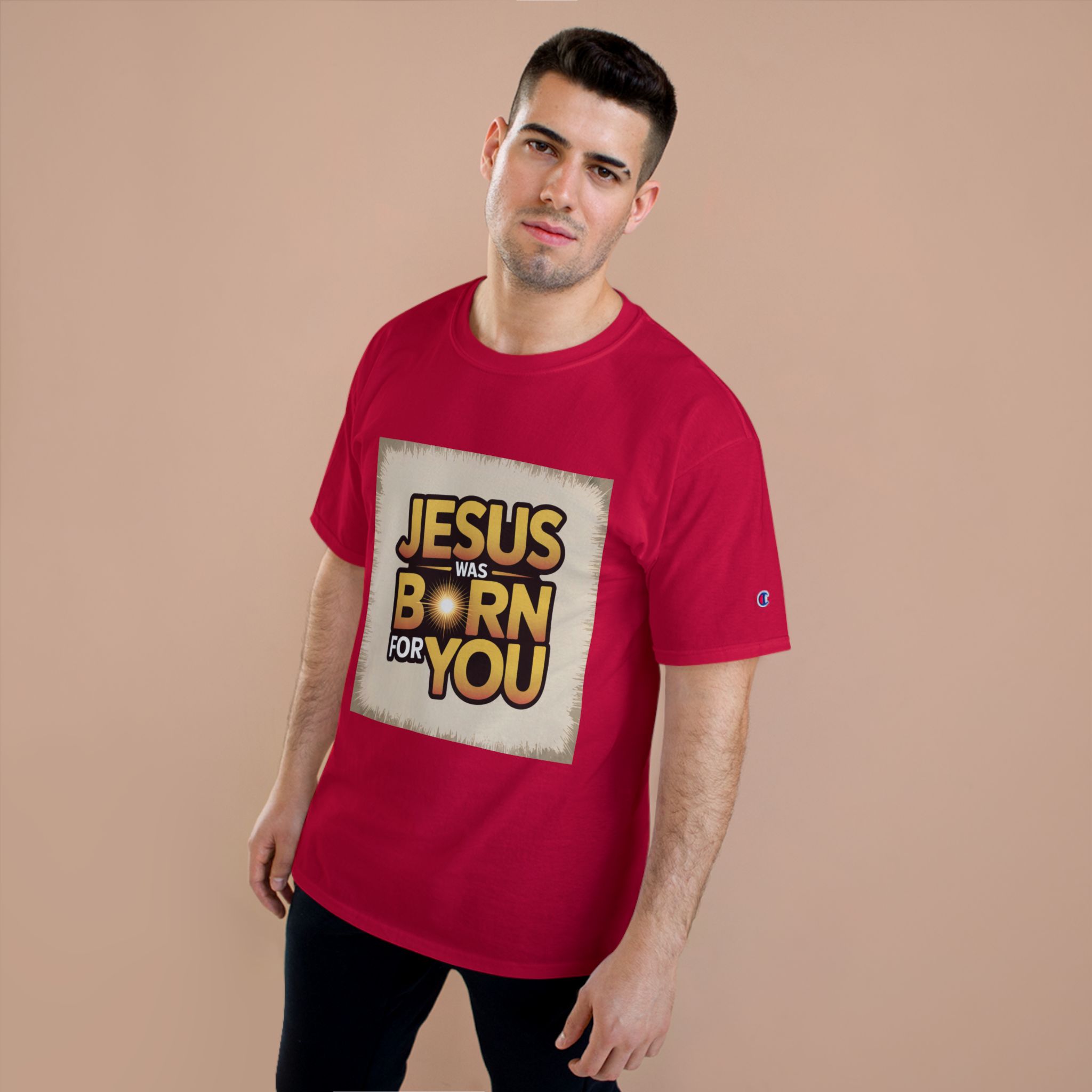 Jesus Was Born For You Champion T-Shirt, Faith-Based Apparel, Christian Gift, Holiday Tee, Religious Clothing, Spiritual Wear