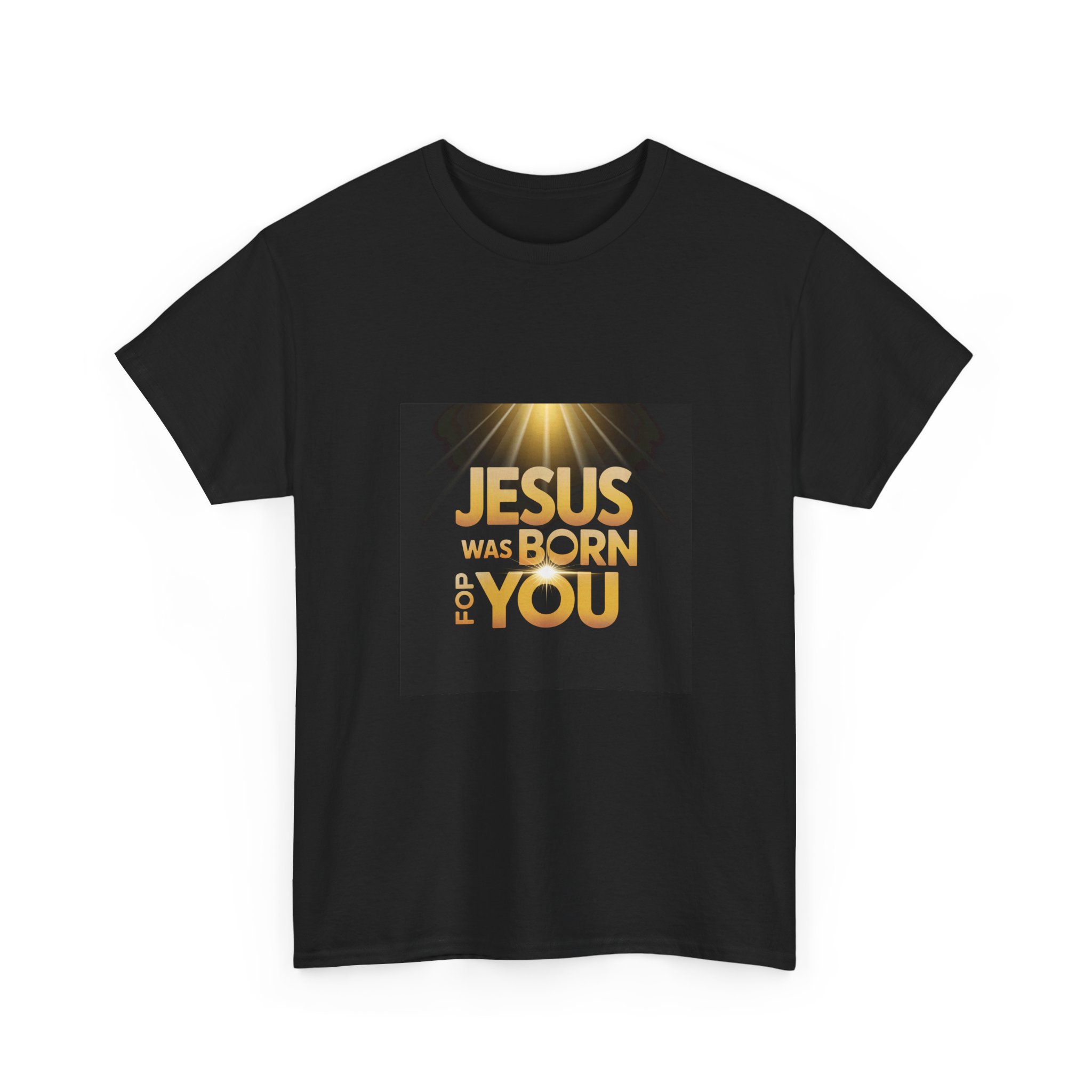 Jesus Was Born for You T-Shirt – Golden Light Christian Shirt in Black, Perfect Christmas Gift for Faith & Church